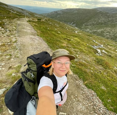 Olen Ronja, asun Muoniossa ja opetan päivätyökseni yläkoulussa. Olen intohimoinen tunturinkävijä ja metsässä liikkuja. Tunturilapin metsissä ja mäissä voi tehdä monenlaista, kesäisin poljen pyörää, syksyisin marjastan, talvisin hiihtelen ja keväisin vapaa-lasken. Kaikkien näiden seikkailujen rinnalla minulle tärkeintä kuitenkin on pysähtyä ja keskittyä hengittämään maailman puhtainta ilmaa. Lapin luonnossa parasta on ehdottomasti hiljaisuus ja puhtaus, kirkas tähtitaivas ja koskemattomat hanget. Lähdetään yhdessä katsomaan näitä!